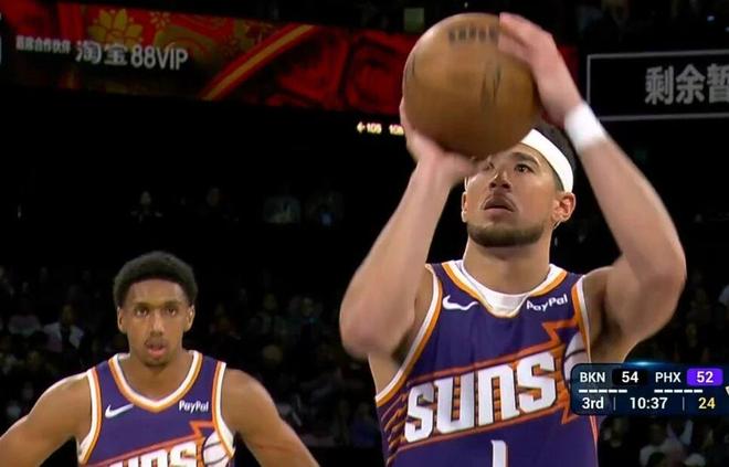 籃網(wǎng)下半場比賽延續(xù)了好的狀態(tài),曼恩三分球命中后補(bǔ)籃得手,個人連得5分幫助球隊(duì)反超比分。布克和伊戈達(dá)羅連續(xù)罰球命中,鄧恩搶斷反擊暴扣,阿倫三分球一箭穿心,太陽連得9分重奪優(yōu)勢以60-54領(lǐng)先。波特三分球打破得分荒,狄龍突破得手,布克一條龍反擊打成2+1,克拉克斯頓空接暴扣,曼恩突破得分,兩隊(duì)比分咬得比較緊。奧尼爾三分球命中后反擊得手,布克兩罰得分,伊戈達(dá)羅順下吃餅命中,理查茲空接暴扣,太陽打出一波11-3的小高潮再次將分差擴(kuò)大到兩位數(shù)以76-64領(lǐng)先。扎威和克洛尼連續(xù)三分球命中,薩拉夫突破得手,籃網(wǎng)打出一波8-3縮小分差。節(jié)末階段,克洛尼和扎威連續(xù)三分球命中,籃網(wǎng)打出一波7-2繼續(xù)縮小分差。古德溫三分球命中后,第三節(jié)比賽結(jié)束,太陽以88-81領(lǐng)先。
